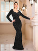 Deze lange paillettenjurk met sweetheart halslijn is een elegante keuze voor gala-avonden en formele evenementen. De aansluitende mermaid-pasvorm benadrukt de taille en heupen, terwijl de lange mouwen en sleep een luxe en verfijnde uitstraling geven.