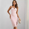 Deze lichtroze paillettenjurk is een perfecte keuze voor elegante gelegenheden, bruiloften of cocktailavonden. Het aansluitende, knielange model met hoge split benadrukt je figuur en voegt een verfijnde, vrouwelijke touch toe.